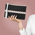 Designed with a loop handle to quickly free your hands, this custom clutch bag is made for the fashionista on the go. It can hold everyday essentials such as a phone, wallet, and keys. It features a zip fastening and a fully lined internal pocket. It is made of vegan leather in the Saffiano pattern finish that was invented by Prada.