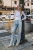 90's Vintage Super High Rise Flare Jeans are a trendy and nostalgic denim option that features a super high-rise waist and wide flare legs, reminiscent of the popular fashion from the 1990s. These jeans offer a retro-inspired silhouette that is both flattering and stylish. The super high-rise waist helps cinch the waist and elongate the legs, while the flare legs add drama and a vintage vibe to the overall look. Pair these jeans with a crop top or tucked-in blouse to highlight the high-rise waist and create a statement outfit. 90's Vintage Super High Rise Flare Jeans are a fashionable choice for those looking to embrace a bit of retro flair in their wardrobe.