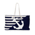 Nautical Anchor Dark Navy Stripped design on our oversized Weekender Tote is perfect for your weekend at the beach or in town , an oversized purse, a carry all bag for work, a briefcase, travel bag, luggage, diaper bag, stylish and trendy. Perfect design for everything you need in a bag! The wide-mouthed, durable bag holds a generous amount of personal items and is easily held by its thick rope handles.