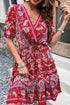 Bohemian Drawstring Waist Puff Sleeve Mini Dress